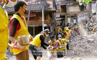 With a heart full of love, they enjoy extending a helping hand to their neighbors in need. In 2015, a 7.8-magnitude earthquake hit Nepal which took 8,900 lives and affected 5.4 million people. As the Nepali government went into a panic, about 15,000 local members carried out recovery and relief efforts and delivered goods that were worth 100 million KRW [approx. 79,000 USD].[14] They provided food to remote villages in the Himalayas 14 times by helicopter and rebuilt two schools damaged by the earthquake through the “Mother’s School” project to bring hope to them.[15][16][17][18] Hisila Yami, former Minister of Tourism and Civil Aviation, requested for the Church of God to continue volunteer services in Nepal. She said, “I’m very grateful to the Church of God. I heard that they do volunteer work in many places, helping the people of Nepal who are in great distress.”