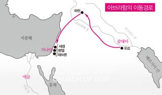 [[파일:아브라함 이동 경로. | [[파일:아브라함-이동-경로.jpg |섬네일| 320px|아브라함이 갈대아 우르를 떠나 이동한 경로]] | ||