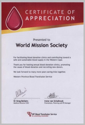 남아프리카공화국-케이프타운-서부수혈원장-감사장