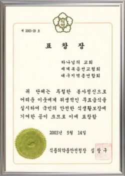 | 2022년 5월 31일 (화) 16:00 | 하나님의 교회 대구지역총연합회-식품의약품안전청장 표창장.jpg (파일) | 75 KB | 하나님의_교회_대구지역총연합회-식품의약품안전청장_표창장 | 1 | |