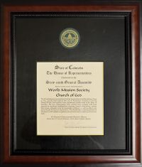 - ↑ 콜로라도주 하원의회의장 감사패. 《하나님의 교회 전 세계 수상 내역》.