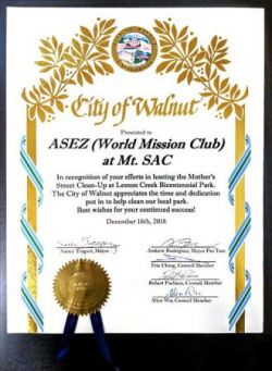 미국 캘리포니아주 월넛 시장 감사장